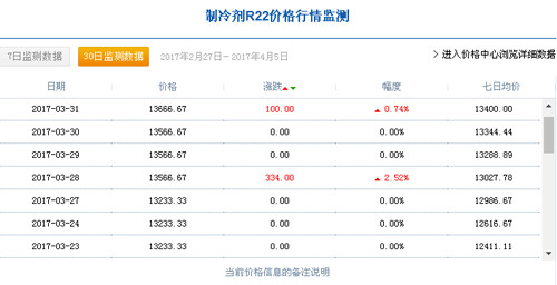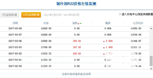 據(jù)有關(guān)數(shù)據(jù)監(jiān)測顯示,3月1日,中國R22制冷劑廠家出廠價格為11333.33元/噸,3月31日,中國R22制冷劑廠家出廠價格達到13666.67元/噸,三月份同比增長20.6%;據(jù)制冷大市場記者了解,2月7日,中國R22制冷劑廠家出廠價格集中在9883元/噸。